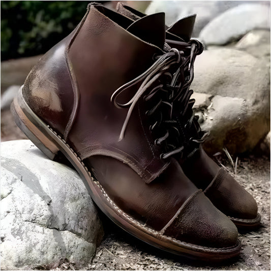 Meskie Skorzane Wysokie Trzewiki Klasyczne Sznurowane