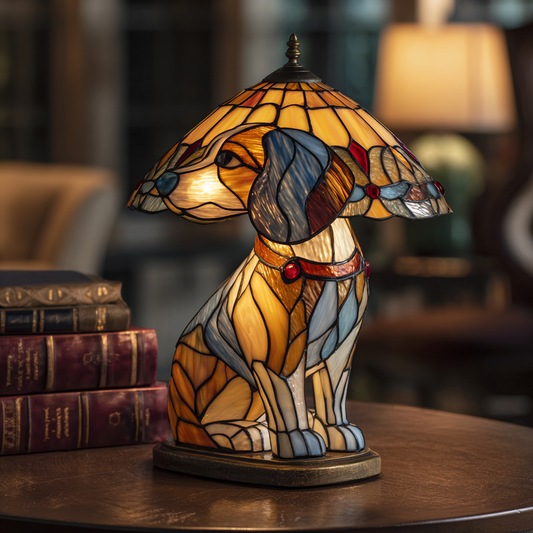 Tiffany'ego z ruchomym kloszem jest lampa stojąca na podstawie wykonanej z psalmów.