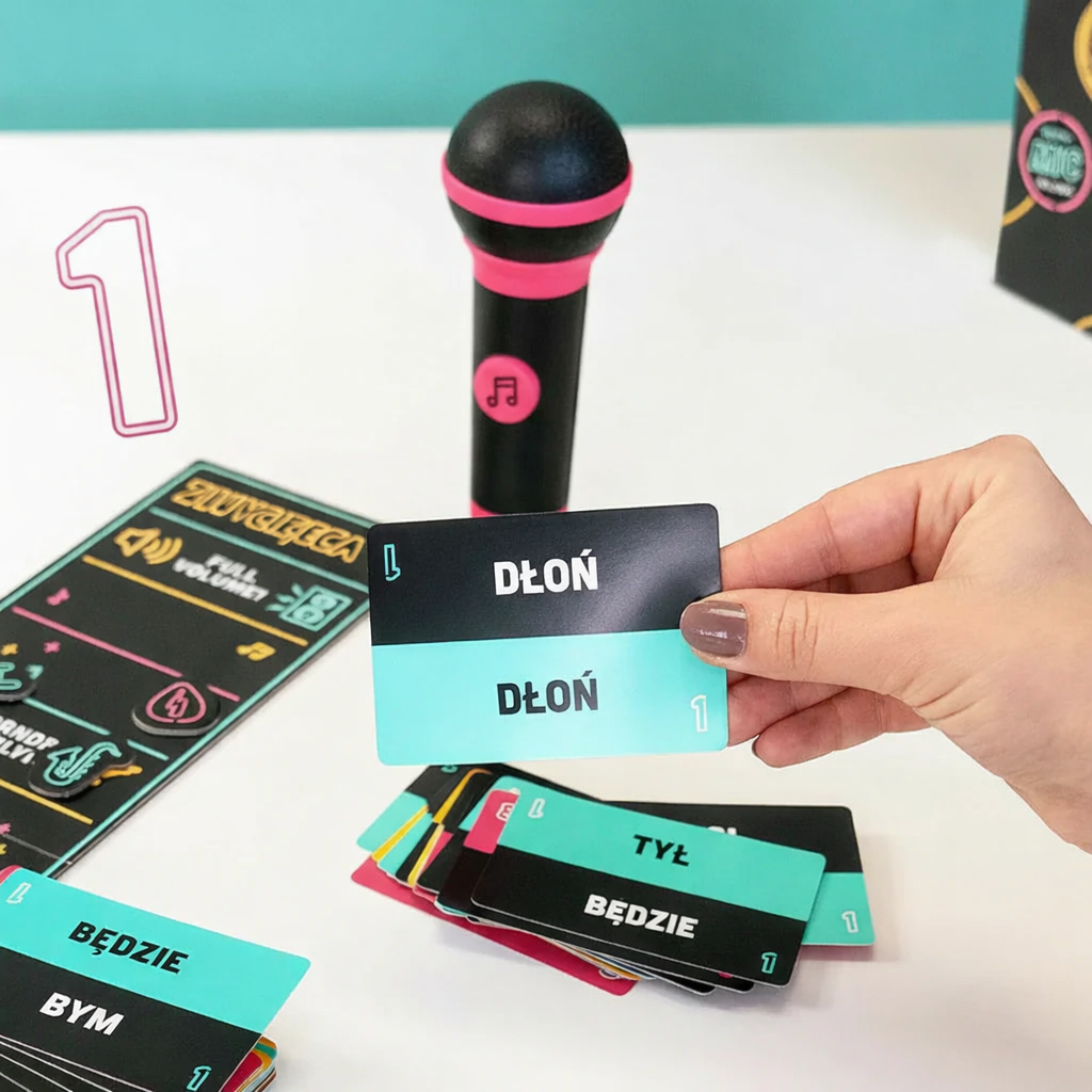 Ta Gra Karciana w formie Gry Karaoke zamienia zwykły wieczór gier w śpiewną zabawę. Losujesz kartę, chwytasz Mikrofon, śpiewasz krótki fragment melodii i używasz wskazanego słowa. Proste zasady, dużo śmiechu, aktywna rozrywka dla rodzin i znajomych. Sprawdza się jako Gra Imprezowa na spotkania domowe, urodziny oraz wyjazdy.