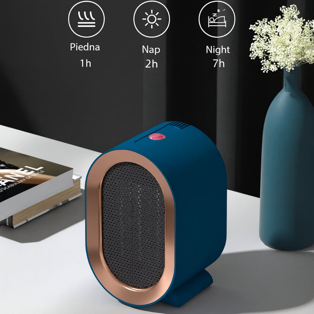 Ten grzejnik elektryczny zapewnia szybkie, równomierne ogrzewanie dzięki ceramicznemu elementowi PTC i cichej pracy poniżej 36 dB. Jego przenośna konstrukcja sprawia, że świetnie sprawdza się na biurku, stoliku nocnym lub w domowym biurze. Regulacja temperatury oraz zabezpieczenia zwiększają wygodę i bezproblemowe użytkowanie w codziennych warunkach.