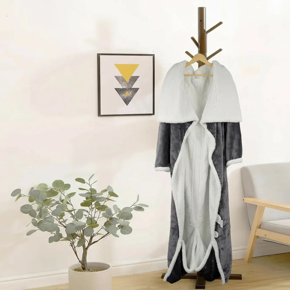 Ten koc elektryczny to praktyczny koc noszony wykonany z miękkiego polaru sherpa, który otula całe ciało i zapewnia przyjemne ogrzewanie podczas odpoczynku. Dzięki regulacji temperatury oraz wygodnym rękawom i kieszeni na stopy sprawdza się podczas czytania, pracy czy oglądania telewizji. To wygodne rozwiązanie dla dorosłych potrzebujących dodatkowego ciepła w domu.