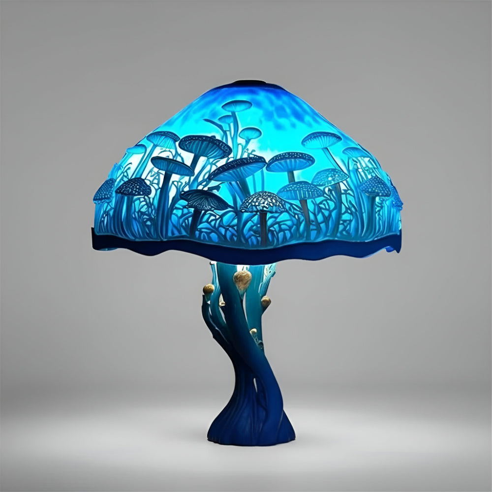 - Artystyczny design grzybowy: kolorowe panele witrażowe i organiczny kształt sprawiają, że lampa staje się wyjątkową dekoracją wnętrza.