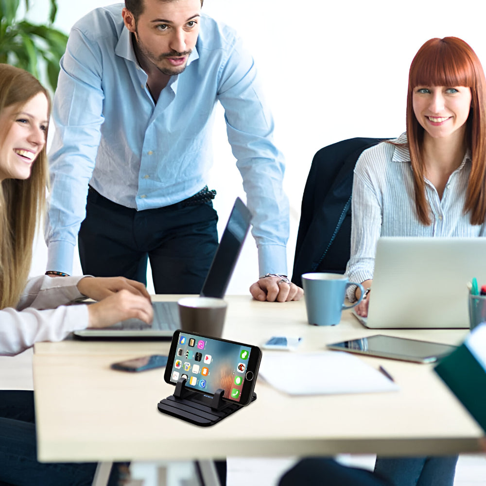 Antypoślizgowy uchwyt samochodowy pomaga utrzymać stabilną pozycję telefonu podczas jazdy, ułatwia korzystanie z GPS oraz poprawia widoczność ekranu. Konstrukcja z miękkiego silikonu pozwala ustawić telefon pod odpowiednim kątem zarówno w aucie, jak i poza nim. Dzięki funkcjonalnej podstawie uchwyt sprawdza się podczas oglądania filmów lub korzystania z aplikacji.